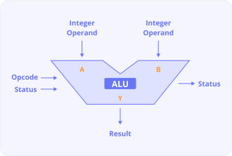 계산기를 떠올려 보자. 계산을 위해서는 우선 계산할 값(피연산자)과 그 계산 방식(연산자)이 필요할 것이다. ALU의 작동 방식도 마찬가지다. 레지스터를 통해 피연산자를 받아들이고, 제어장치로부터 어떤 연산을 수행할지에 대한 제어 신호를 전달받아 연산을 수행한다. 연산의 결과값은 숫자, 문자, 메모리 주소 등이 될 수 있다. 이 값은 메모리로 직행하는 것이 아니라 레지스터에 일시적으로 저장된다. CPU는 메모리보다 레지스터에 접근하는 속도가 훨씬 빠르기 때문이다.